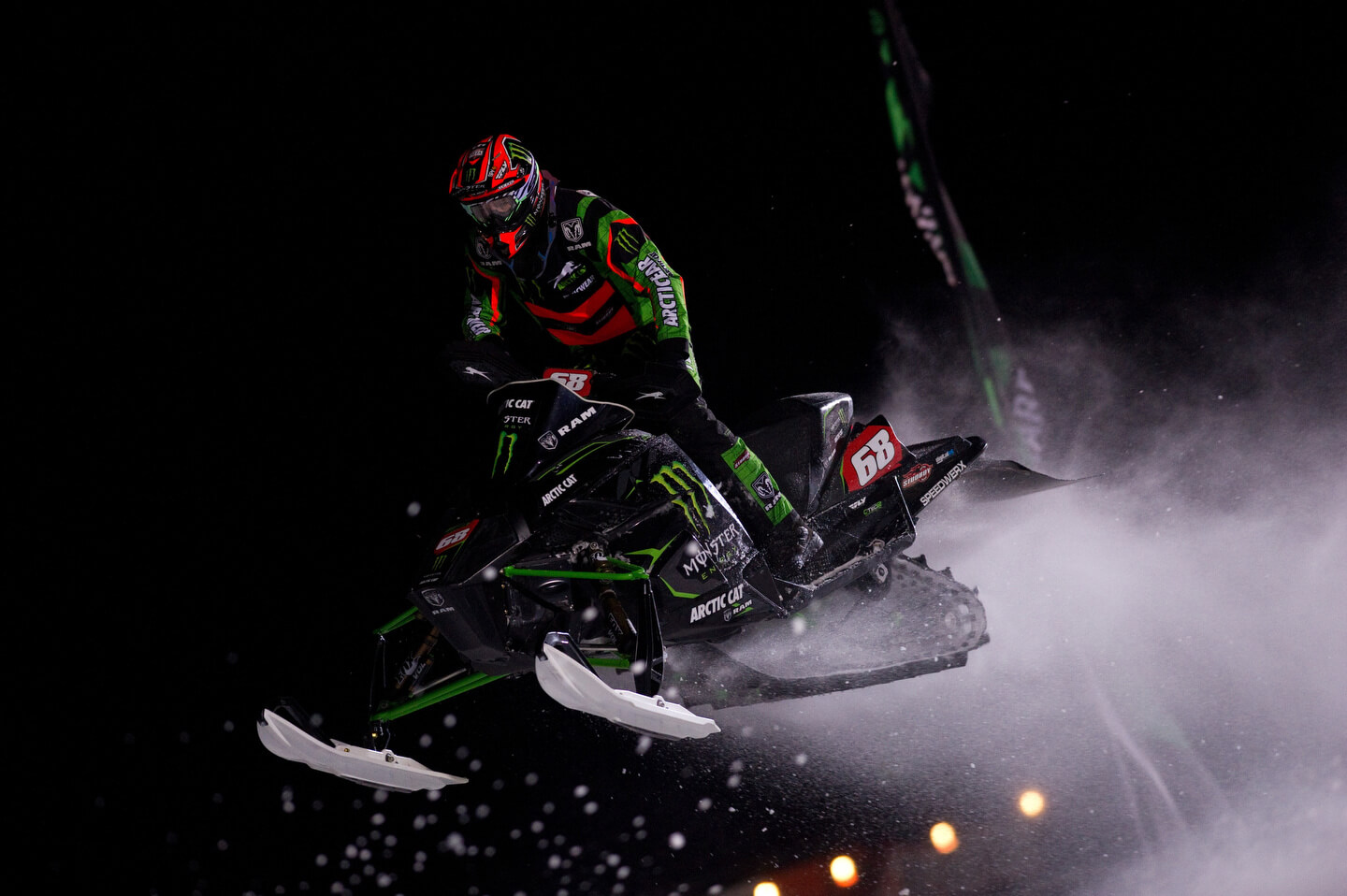 March 2, 2015 – Monster Energy / Arctic Cat / Ram Truck’s Tucker Hibbert took home a win and held onto his commanding lead in the Pro Open points championship chase at the Ram Truck Snocross National in Mt. Pleasant, Mich. For the second consecutive year, central Michigan’s Soaring Eagle Casino & Hotel featured a … Continued