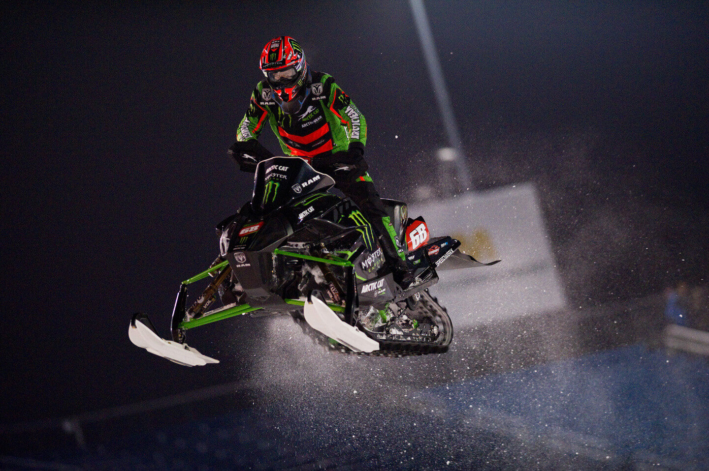 Feb. 23, 2015 – Monster Energy / Arctic Cat / Ram Truck’s Tucker Hibbert was untouchable at rounds 11 and 12 of the ISOC National Snocross tour in Joliet, Ill. Hibbert put on an impressive show at Route 66 Raceway’s drag strip, turned snocross course, by winning all four of his qualifying rounds and both final … Continued
