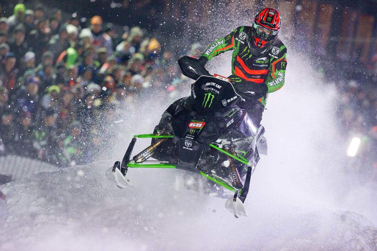 Jan. 5, 2015 – Monster Energy / Arctic Cat / Ram Truck’s Tucker Hibbert will compete for his 100th Snocross Pro National victory this weekend in Shakopee, Minn. Hibbert is 4-for-4 on the ISOC National Snocross tour this season and with two Pro Open finals on the line at Canterbury Park, he’ll have two chances … Continued